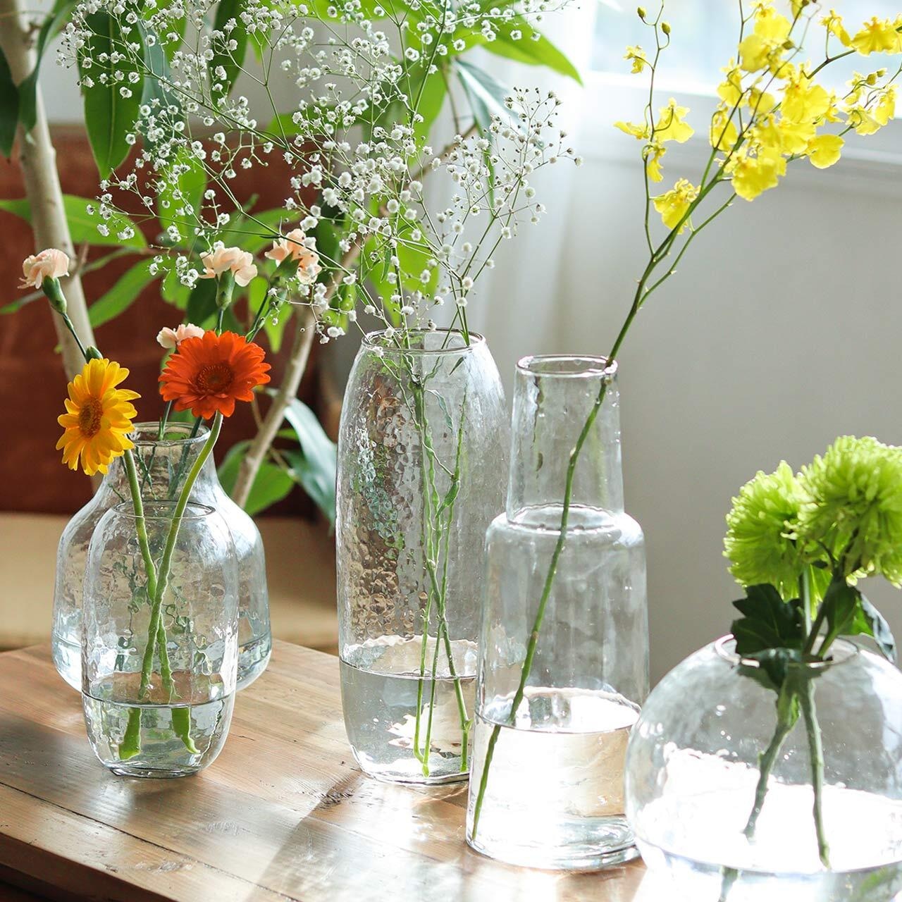 表面の凸凹が特徴的なハンドメイドのフラワーベース。