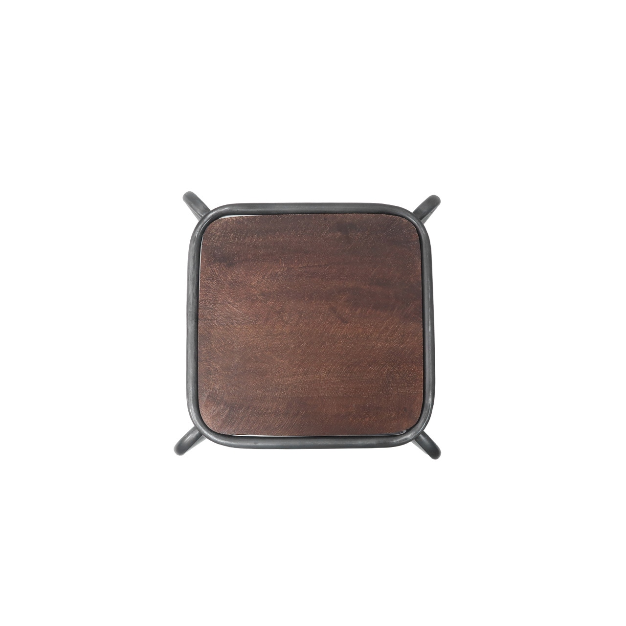 研磨痕をあえて残したアカシア材にスチール製のフレームを合わせ、ビンテージ感のあるスツールを再現しました。