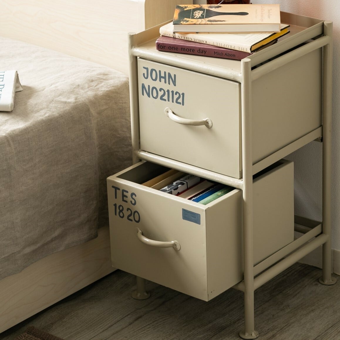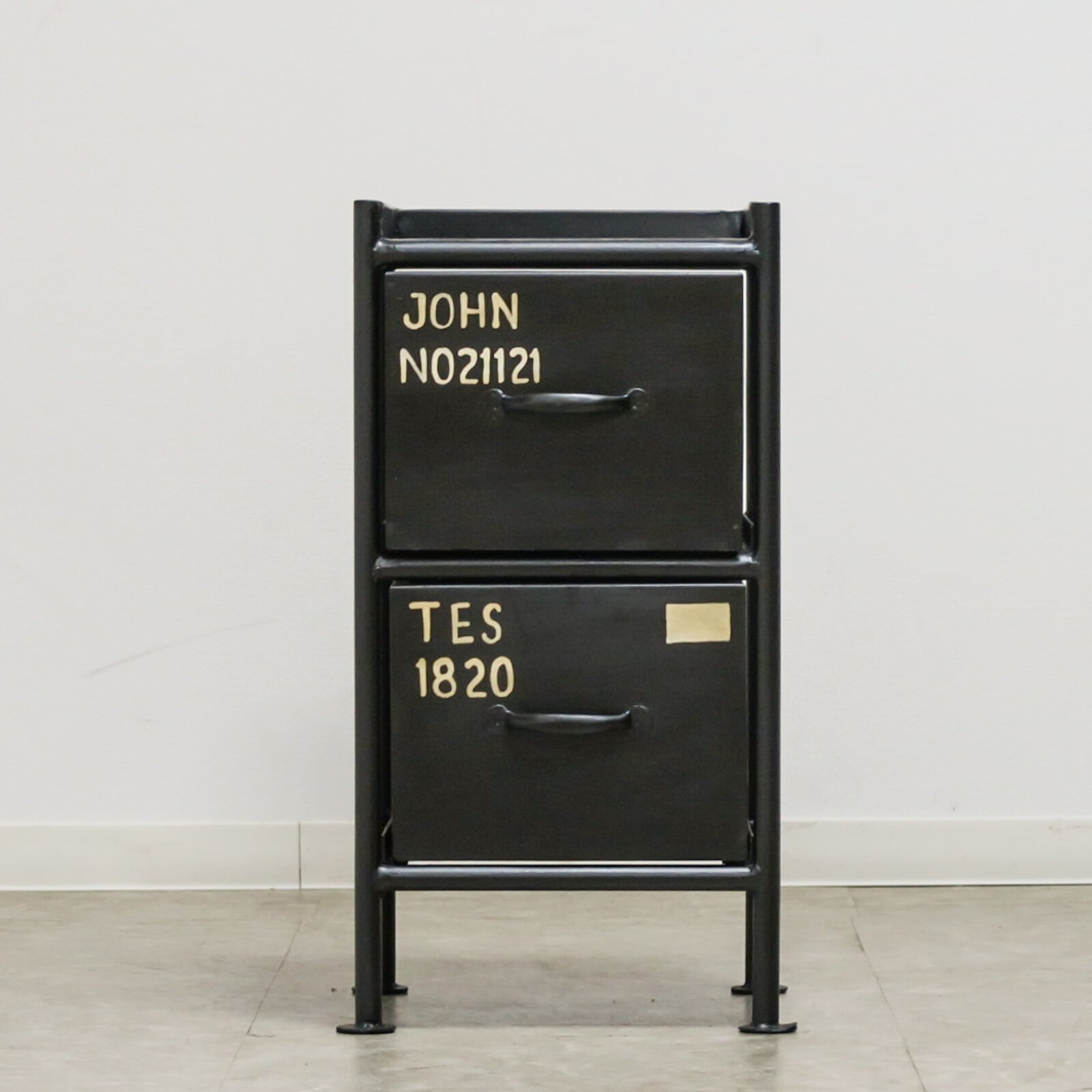 インダストリアルテイスト漂うヴィンテージ調の無骨でかっこいい収納家具“アイアンチェスト(スツールチェスト)”!引き出しのナンバーペイントがミリタリーな雰囲気を醸し出しています♪ 流行りのブルックリンスタイルにもピッタリで、モノトーンベースのデザインはリビングやダイニングのどんな家具やインテリアにもマッチします。 素材はスチール製で、使い込むほどに錆やへこみが付き、ユーズド感がより愛着を感じさせてくれます。 衣類収納やおもちゃ収納、大事なものを保管する収納庫として使えるだけでなく、天板にお気に入りの雑貨や小物を飾るなど、使い方はあなた次第!引き出し収納はオープンラックと並べてもおしゃれで便利に使えます。