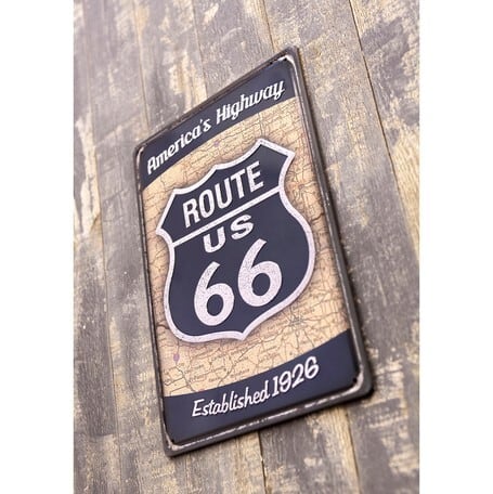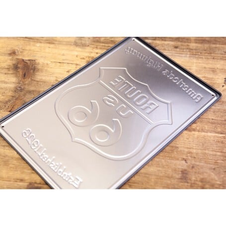 アンティーク メタルエンボスプレート(S)★ROUTE US66 BL ★