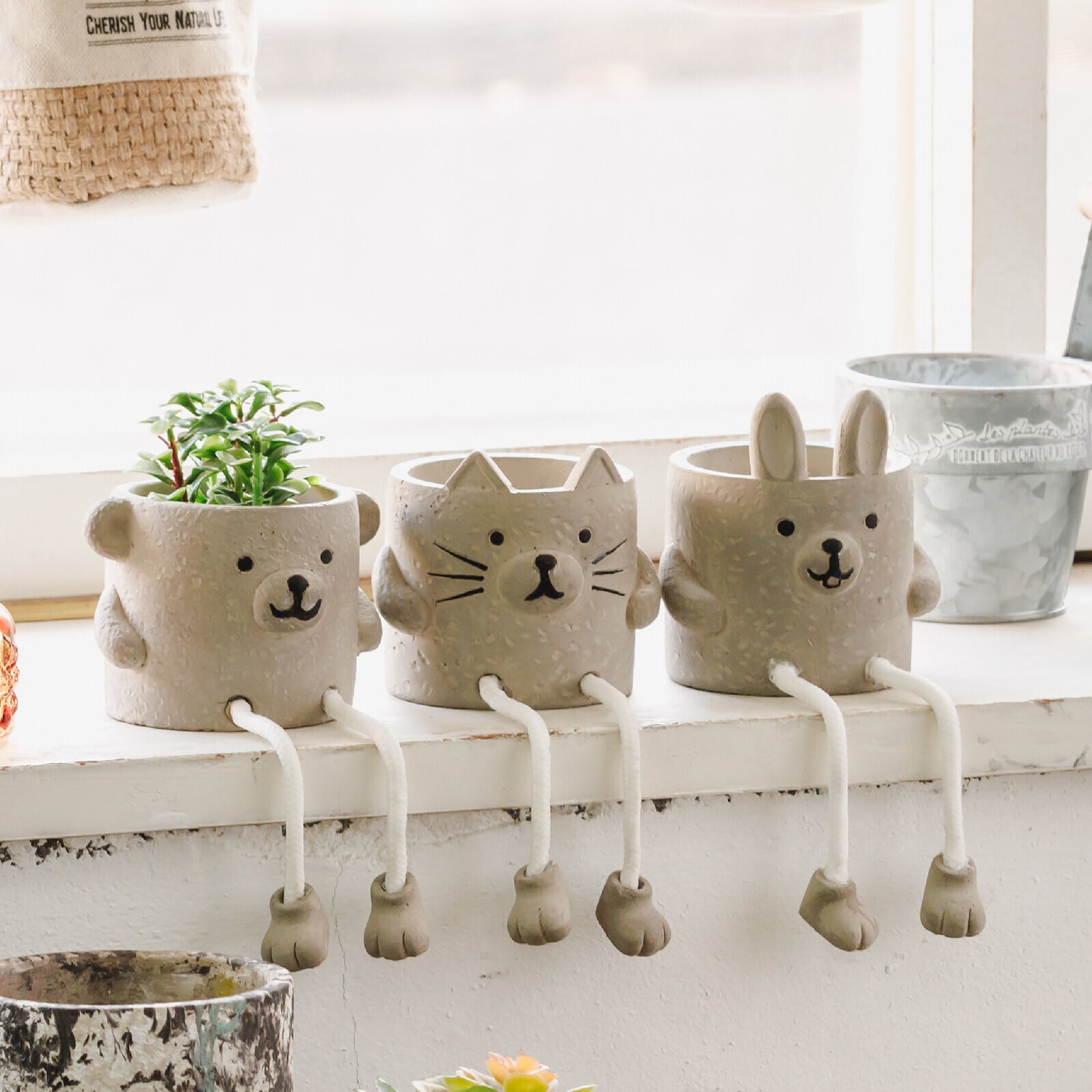 可愛くお座りしたポット【アニマル・レストポット・S】